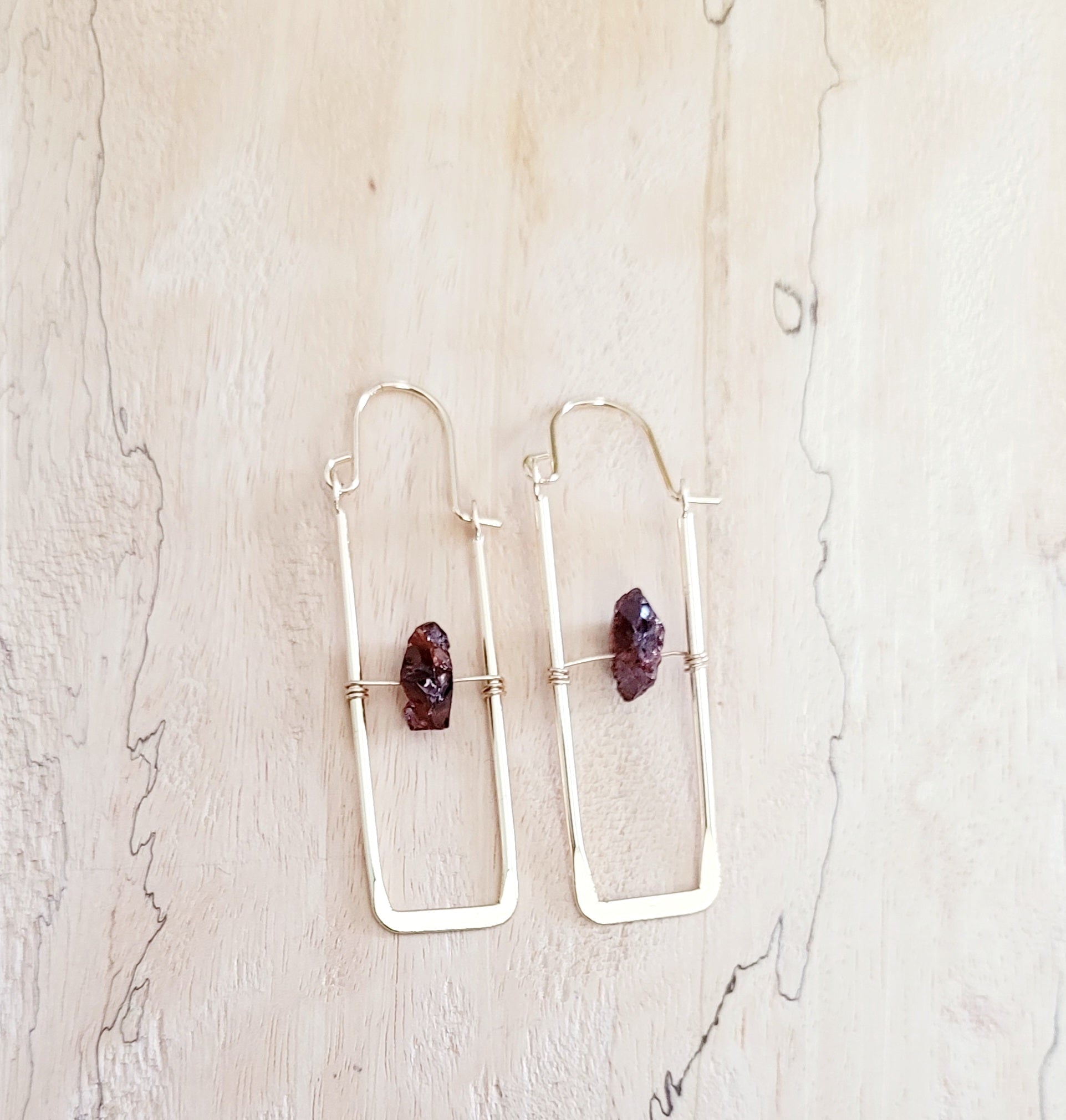 These gorgeous rectangular earrings are lightweight and stunning. Made from semiprecious stones and 18k gold plated brass parts. Earrings measure 1.5 inches long.