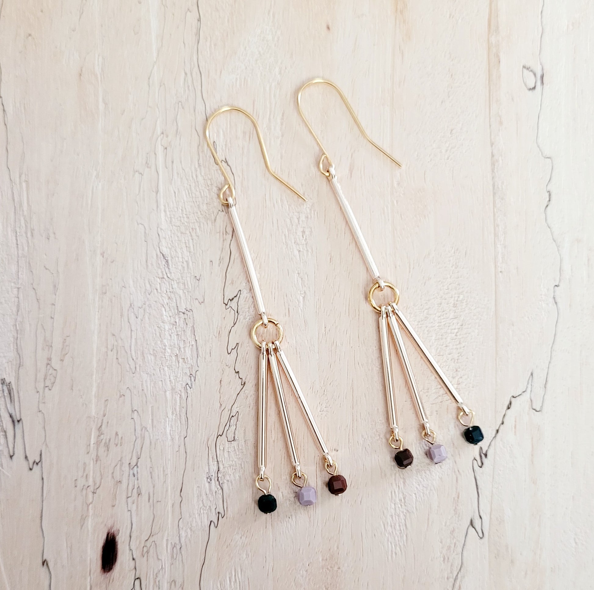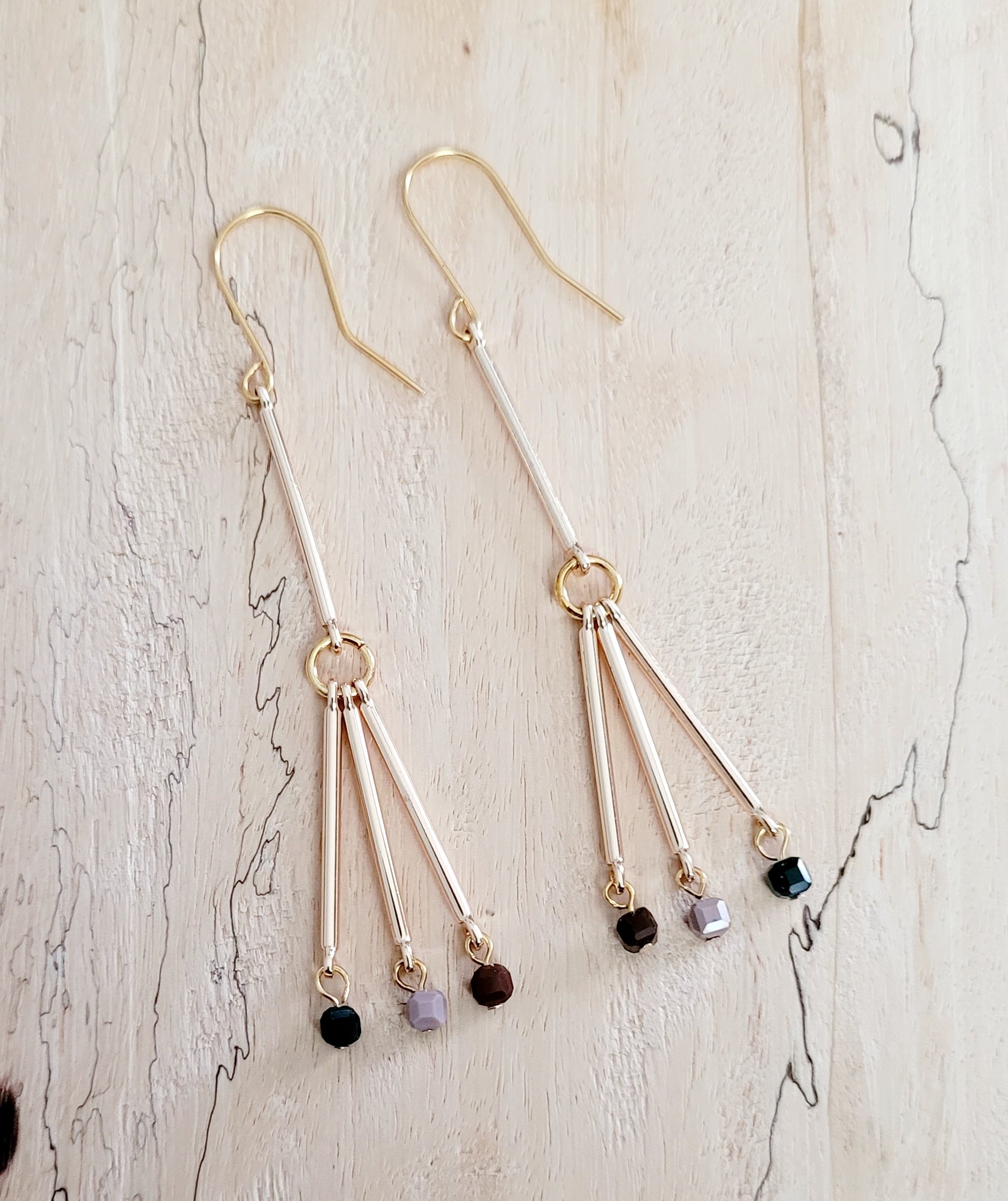 Gold and agate tube earrings are statement earrings. These gorgeous earrings come in three color palettes. These earrings are not heavy as the tubes are hollow. All earring findings are high quality 18k gold over brass. All earrings are nickel free.